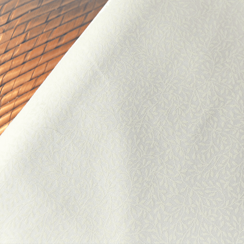 Un tissu avec des motifs de feuillages parsemés vous est proposé ici en white white teinte blanche, white cream teinte plus écru.