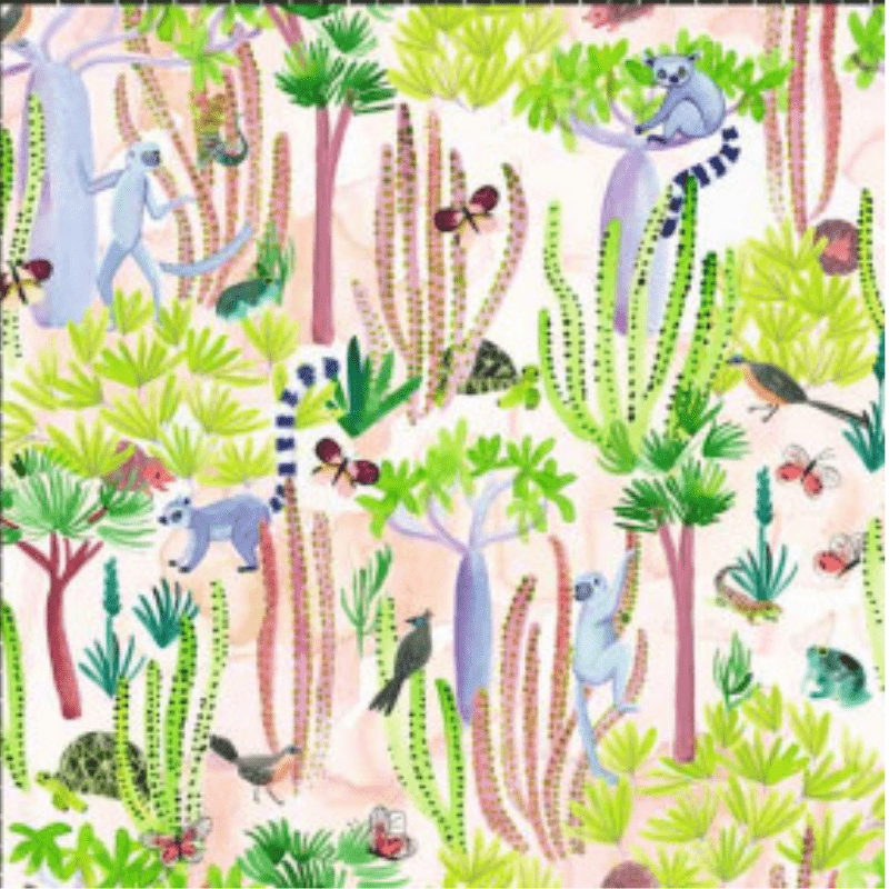 Tissu Madagascar aventure illustrée par Katy Tanis, un plaisir de voyager sur l’île de Madagascar,