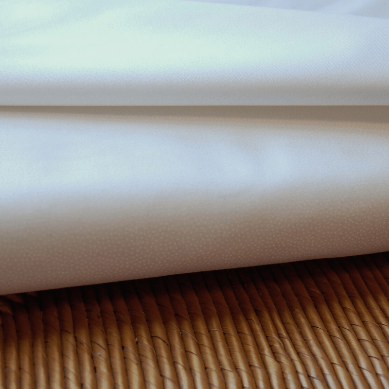 Un tissu proposé ici en trois déclinaisons : blanc ton froid ou chaud et un gris pâle, tous parsemés de petits points rigolos.